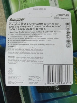 Energizer Rechargeable Cell AA and AAA 1.2v cell Batteries – 2800mAh (2 Cell)