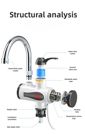 Instant Hot Water: Equipped with a powerful Heating tube and precise Temperature sensor chip, this unit heats water as it flows through. The built-in digital LED display shows the exact temperature of the water (e.g., $55^{\circ}$C or $49^{\circ}$C), so you always know what you're getting.