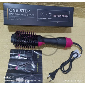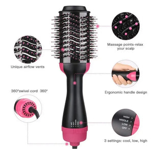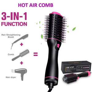 "productTitle": "Professional 3 in 1 Hot Air Brush Straightening Hair Dryer comb and Volumizer with Comb Straightener Curler, Salon Negative Ion Ceramic Electric Blow Spin Dryer Rotating Brush for All Women, Girl Hair Types",