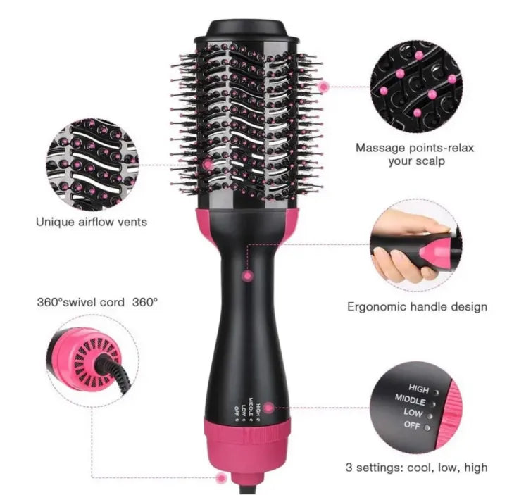 Step 1: Filtered productAttributes: { "productTitle": "Professional 3 in 1 Hot Air Brush Straightening Hair Dryer comb and Volumizer with Comb Straightener Curler, Salon Negative Ion Ceramic Electric Blow Spin Dryer Rotating Brush for All Women, Girl Hair Types", "categoryPath": "Health & Beauty>Beauty Tools>Hair Styling Appliances>Straightening Combs & Brushes" } Step 2: additionalKeyWords: None Step 3: Introducing the Professional 3 in 1 Hot Air Brush Straightening Hair Dryer comb and Volumizer with Comb Straightener Curler, Salon Negative Ion Ceramic Electric Blow Spin Dryer Rotating Brush for All Women and Girl Hair Types. This versatile tool combines a hair dryer, straightener, and volumizer in one, making it perfect for creating salon-quality hairstyles at home. The negative ion ceramic technology helps reduce frizz and static, while the rotating brush design allows for effortless styling. Suitable for all hair types, this hot air brush is a must-have for anyone looking to achieve smooth, voluminous hair with ease. Step 4: The tone of voice is in accordance with Informative. No amendments needed.